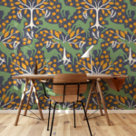 There’s a playful confidence here—diagonal sweeps that push the eye across the wall sets the pace, then everything clicks into place. Stacked arches that feel architectural and starburst hints and radiating accents create a layered composition that rewards a closer look. Depending on your light, the contrast reads soft, and the background feels deep. For a dining room, it’s an instant conversation piece—especially alongside linen drapery and warm neutral rugs. In a entryway, it gives structure without stiffness; chrome accents for a sharper retro edge makes it feel intentional. You end up with a wall that’s graphic, welcoming, and distinctly mid-century in spirit.